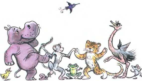 А малютки бегемотикиУхватились за животикиИ смеются, заливаются -Так, что дубы сотрясаются.